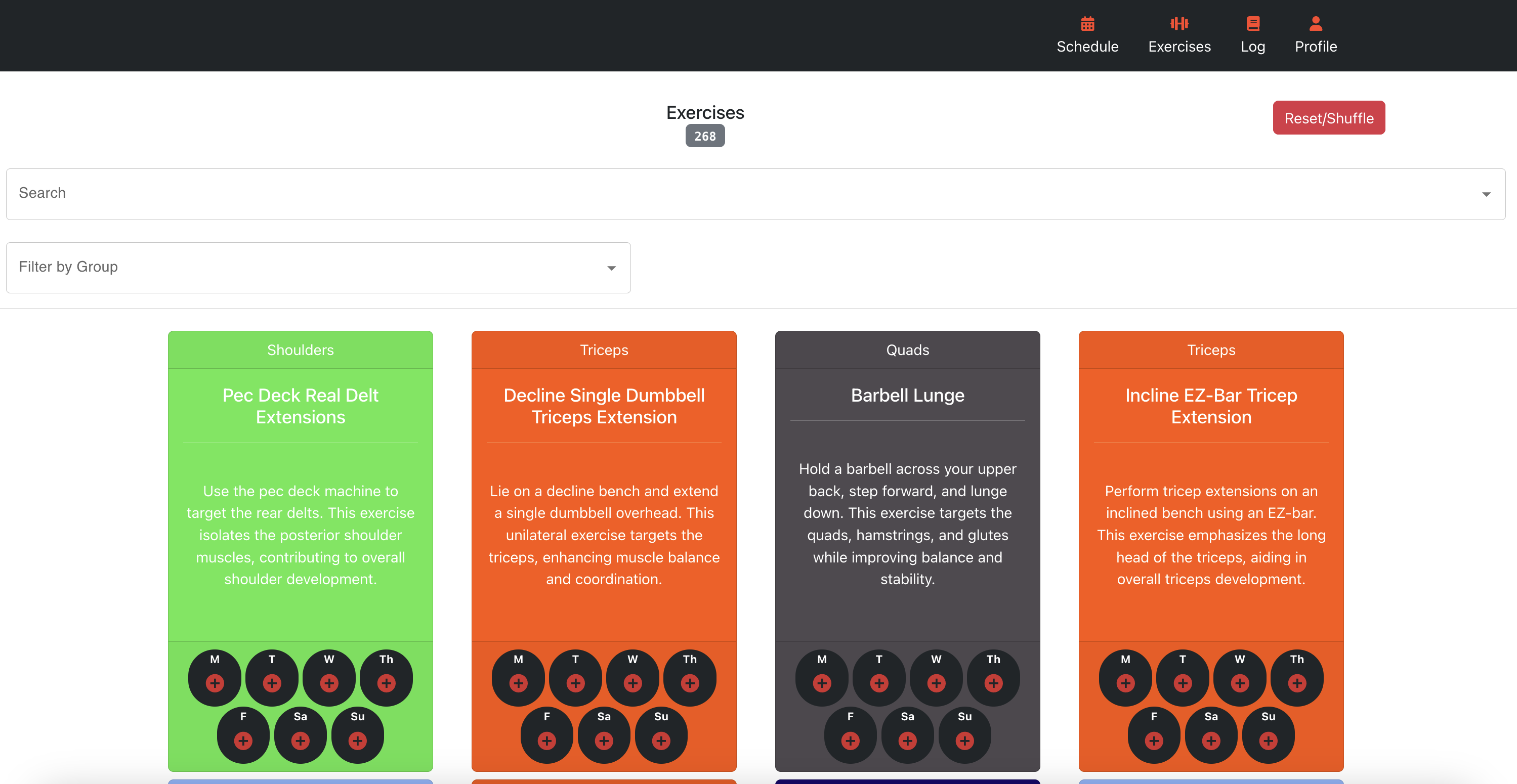 This React web application has the ability to plans, create, and track gym workouts on a weekly basis. It processed user-inputted information in the back-end of the app to return an organized list and plan of various potential workouts. Additionally, it makes use of maps, filters, state updating, etc. and seamlessly transfers data between pages and components.